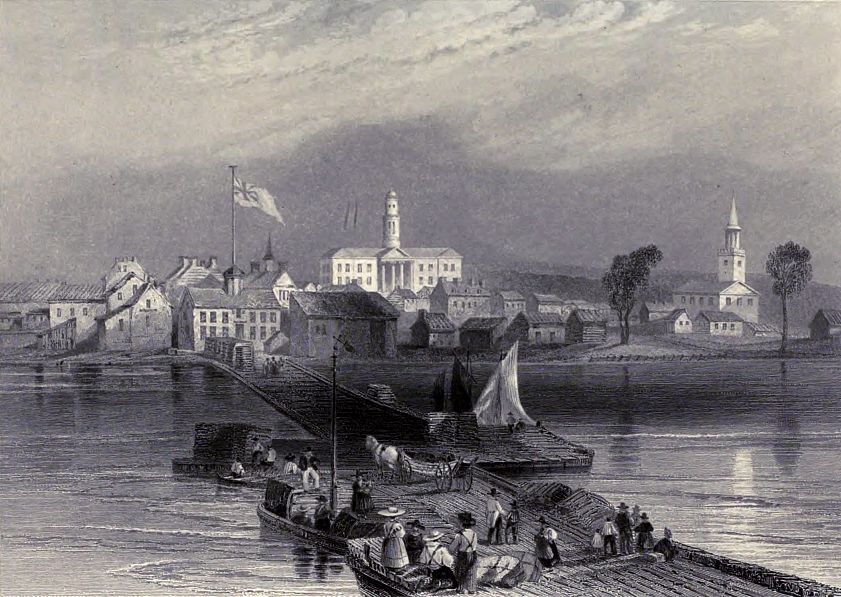 Quebec maintains a constant communication with Point Levi on the opposite shore, whence it derives a great part of its provisions. A steam ferry-boat plies every half hour, making the trip in about ten or fifteen minutes. The navigation also being very properly left free, the river is constantly covered with numerous canoes, generally hollowed out from the trunks of trees. The boatmen brave the most tempestuous weather; and, though often driven several leagues out of their course, are scarcely ever wrecked. Even in winter, when they must encounter blocks of ice, with which the channel is encumbered, they contrive with ropes and iron-pointed poles to raise their vessels upon the surface of the masses, and drag them along till they find open water on which to launch it. When this channel is frozen entirely over, the communication becomes still more easy. A line is marked with beacons placed by the Grand Voyer, over which hay, firewood, with other bulky articles, are transported abundantly and at reduced prices. This advantage occurs only occasionally; but every year the channel between the Isle of Orleans and the northern coast is frozen over, when the produce of that fertile spot, reserved for the occasion, finds a ready conveyance. Formerly, milk and vegetables were brought in a frozen state from distant quarters, but now these commodities are procured in abundance from the neighbourhood.