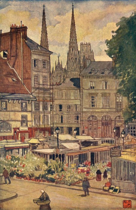 It is a task of extreme difficulty to set down on paper what may be called the character of a country; it includes so much—the historical past, the solemn and magnificent buildings, the antiquity of the towns, the nature of the landscape, the individuality of the people; and besides all these large and important facts, there must be more than a reference to distinctive customs, quaint street scenes, peculiarities in costume, manners, and style of living. Only when all these topics have been mingled and interwoven to form a comprehensive whole, can we feel that justice is done to a country. Yet when the scope of the book has been thus outlined, the manner of it remains to be considered, and on the manner depends all or nearly all the charm. It will not answer the purpose we have in view to follow the methods of guide-book writing; that careful pencil-drawing, where each small object receives the same detailed recognition in accordance with its size as does each large2 fact, is not for us; for it is essential that the whole must consist of wide areas of light and shade, to make definite impressions. Many people have passed through the country, guide-book in hand, have studied the style of every cathedral, have seen the spot where Joan of Arc was murdered, and where William the Conqueror was born, but have come back again without having once felt that shadowy and intangible thing, the character of Normandy, wherein lies its fascination.