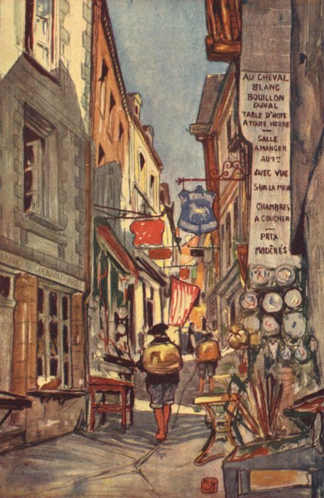 Pen and brush are both necessary in the attempt to give an impression of a country; word-painting for the brain, colour for the eye. Yet even then there must be gaps and a sad lack of completeness, which is felt by no one more than by the coadjutors who have produced this book. There are so many aspects under which a country may be seen. In the case of Normandy, for instance, one man looks for magnificent architecture alone, another for country scenes, another for peasant life, and each and all will cavil at a book which does not cater for their particular taste. Cavil they must; the artist and author here have tried—knowing well how far short of the ideal they have fallen—to show Normandy as it appeared to them, and the matter must be coloured by their personalities. Thus they plead for leniency, on the ground that no one person’s view can ever exactly be that which satisfies another.