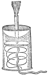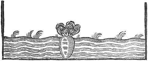 Let there bee had in a readinesse a pot made after the forme of the figure following, having a little hole at the top, in the which fasten a reed or pipe, also another little hole at the bottom: presse this pot into a bucket of water, and it will make a loud noyse.