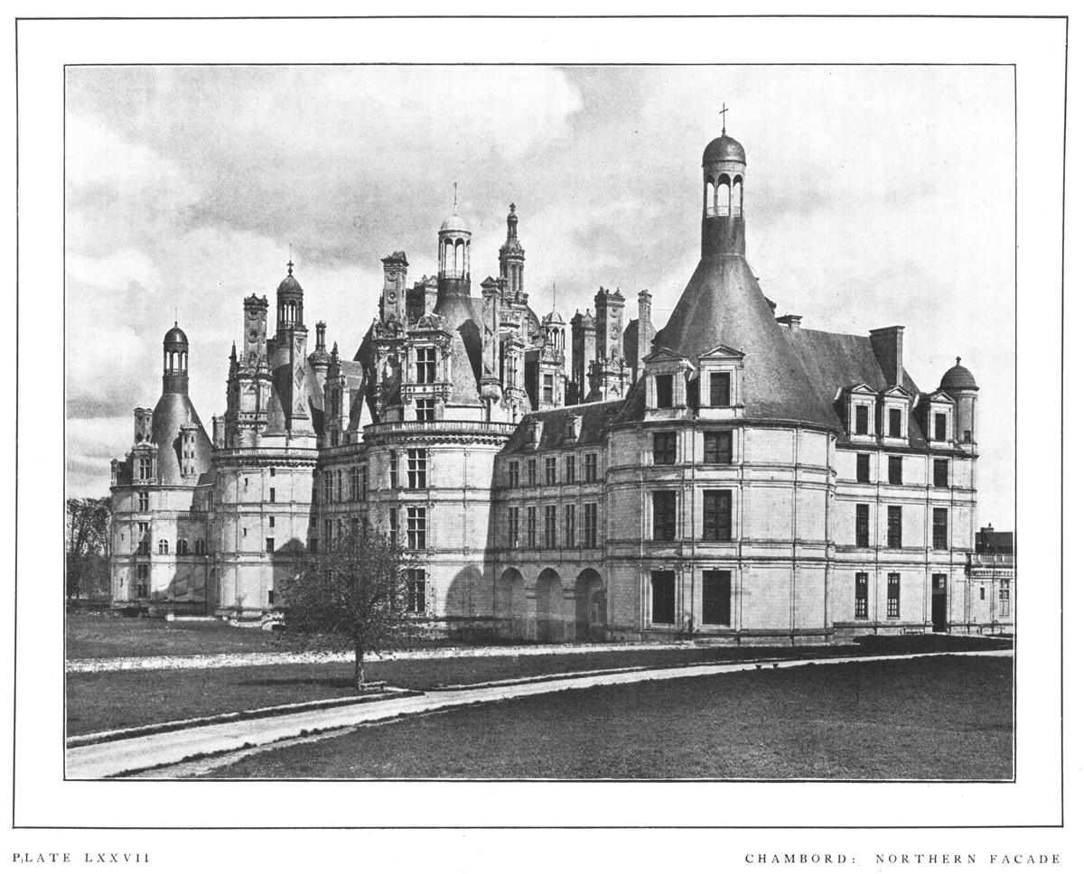 "Chambord is in truth a brilliant example of transition. The early Renaissance is there to be seen, taking on itself the burden beneath which the failing forces of the Gothic spirit had sunk. But the intention of the work is wholly foreign to the main direction taken by the new movement, and condemned, by its very nature, to remain, in spite of the wonderful genius lavished upon it, an unfruitful tour de force."