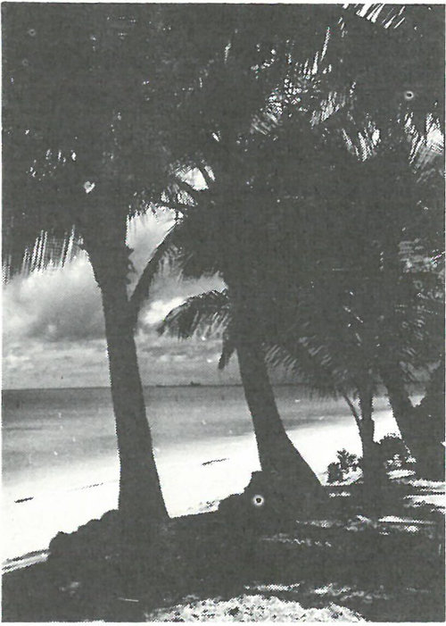 The scientists found in the Bikini ecosystem, in low but perceptible amounts, residual traces of radioactivity deposited by the tests. On certain islands, craters dug by nuclear explosions still gaped in the reefs. The test islands still bore nuclear scars, and in some areas of the lagoon corals and algae had been killed by silt stirred up by the detonations. But Bikini’s life system clearly was in a process of healing. Large islands were covered by regrowths of vegetation; on some, the masses of morning glory, beach magnolia and pandanus were growing so densely that field parties had extreme difficulty cutting paths through them. Bikini Atoll, scientists believed, needed only clearing and cultivation to make it once again suitable for human habitation.