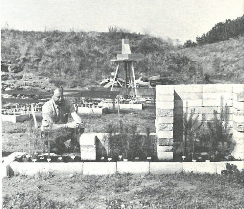 The Trinity site in New Mexico, scene of the first atomic detonation in history, was studied for a number of years after 1945, particularly in relation to the distribution and effects of residual radioactivity in the desert environment. In 1963 and 1964 scientists from the University of Missouri undertook to determine the state of revegetation of the original atomic bomb crater.