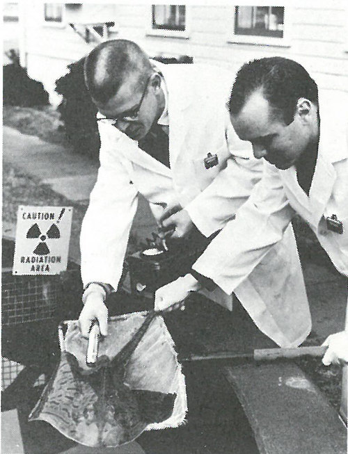 Fisheries biologists studying hatchery fish reared in water containing radioactivity from the Hanford plutonium reactors.