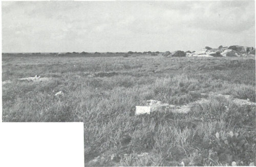Islands on the rim of Eniwetok Atoll, as they appear today. The marks of man, such as a landing strip, are visible, but regrowth of vegetation is apparent. Note extent of the reef on both sides of islands.