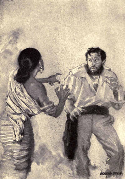 A plaintive hail from the rough brick coping of the bund drew his atrabilious attention. The mate[4] saw that a brown, beardless fellow was making gestures at him. A lantern on the quarterdeck flung unsteady rays upon the Malay’s nakedness, complete save for the breech-clout through which a kris was thrust. In his left hand he gripped a loose-woven coir bag, heavily full. His left held out, on open palm, three or four shining globules. Scurlock viewed with resentment the lean, grinning face, lips reddened and teeth jet-black by reason of long years of chewing lime and betel.