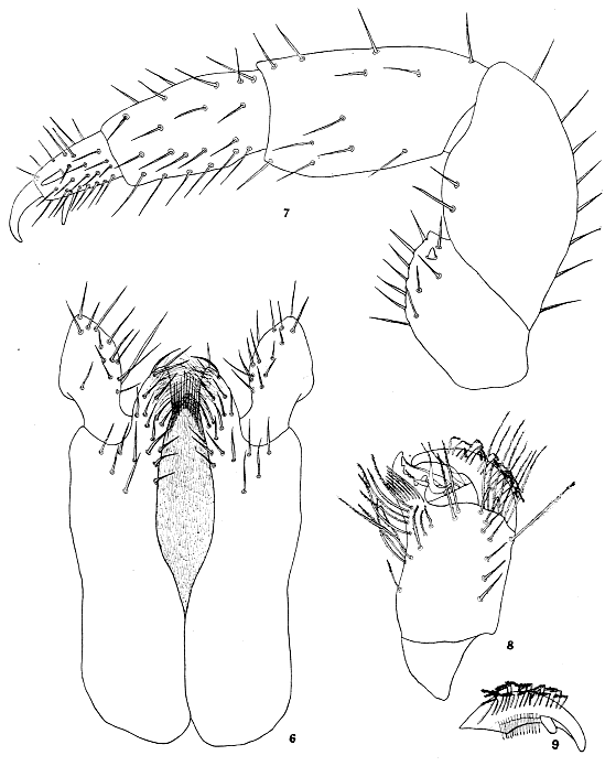 Postmarginal vein distinctly longer than the stigmal. Legs concolorous except knees, tips of tibiae and the tarsi. Stylus somewhat shorter than the ovipositor which is a third the length of the abdomen. |