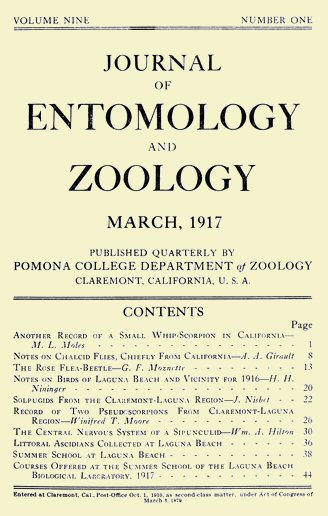 JOURNAL OF ENTOMOLOGY AND ZOOLOGY MARCH, 1917 |