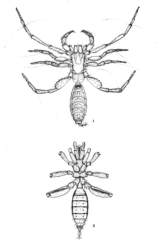 In April, 1916, Dr. W. A. Hilton collected some small whip-scorpions in the Pomona College Park at Claremont. These creatures were without eyes and yet they seemed to avoid forceps. They were able to run backwards or forwards with equal ease. On examination it was found that there were long hairs on the legs such as shown in the figure. Other specimens were afterwards found in one of the nearby canyons, and two specimens in the college collection were marked “C. Metz, in the mountains near Claremont.”