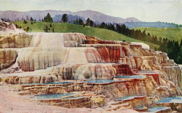 We quote again: "The river is running to the south; the mountains have an easterly and westerly trend directly athwart its course, yet it glides on in a quiet way as if it thought a mountain range no formidable obstruction to its course. It enters the range by a flaring, brilliant-red gorge, that may be seen from the north a score of miles away."