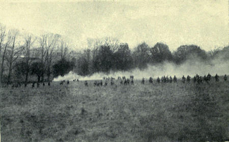 Our period of “Rest.” (Time spent out of the trenches is so miscalled in the Army!) It was extended for reasons known only to those in lofty positions, and we spent the time in performing all the evolutions of an infantry battalion in training, drill, manœuvres, etc. Of course, all this is very necessary after the sometimes enforced inactivity of[229] the trenches, and helps to pull out the kinks; but it gets rather monotonous, and when we heard that we were off to the line again every one was glad.