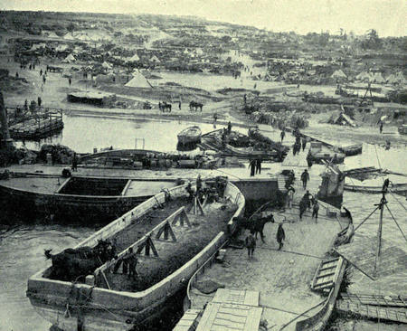 When the war began the surgeons did not know where to put the wounded, because of the varying fortunes of the fighting. Even Boulogne, Calais and Havre were not certain of safety, so that attending to the wounded and accommodating them was a precarious thing; but the temporary hospitals have been gradually replaced by stationary hospitals, the mobile makeshift has been succeeded by the permanent institution, and so splendid and complete are our resources now that in one day the enormous total of 100,000 casualties could be dealt with by the R.A.M.C.
