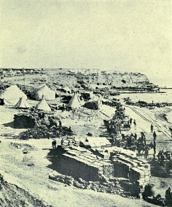 Just as we got into one of these cleaning depots a Jack Johnson burst very near us, but nobody took the slightest notice of it, so accustomed does one become to the happenings of war. Five or six men were in each hot bath, and something like 2000 baths a day are given. The men become thoroughly clean personally, and their clothing also is perfectly freed from vermin and filth, and the troops look as happy as possible.
