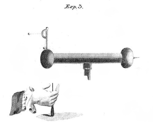 | Reasons for supposing, that the glass globe charges positively, and the sulphur negatively.—Hint respecting a leather globe for experiments when travelling. | ibid. |
