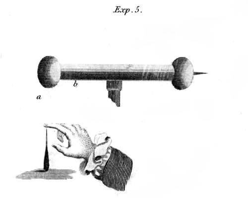| Additional experiments: proving that the Leyden bottle has no more electrical fire in it when charged, than before: nor less when discharged: that in discharging, the fire does not issue from the wire and the coating at the same time, as some have thought, but that the coating always receives what is discharged by the wire, or an equal quantity: the outer surface being always in a negative state of electricity, when the inner surface is in a positive state. | 245 |