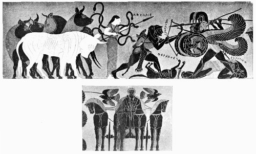 | XXII. | Chalcidian vase in Bibl. Nat., Paris: Herakles and Geryon; chariot | 320 |
