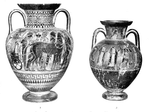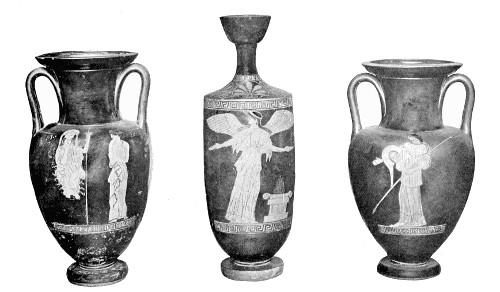 | Mention of painted vases in literature—Civil and domestic use of pottery—Measures of capacity—Use in daily life—Decorative use—Religious and votive uses—Use in funeral ceremonies—Shapes and their names—Ancient and modern classifications—Vases for storage—Pithos—Wine-amphora—Amphora—Stamnos—Hydria—Vases for mixing—Krater—Deinos or Lebes—Cooking-vessels—Vases for pouring wine—Oinochoë and variants—Ladles—Drinking-cups—Names recorded by Athenaeus—Kotyle—Skyphos—Kantharos—Kylix—Phiale— Rhyton—Dishes—Oil-vases—Lekythos—Alabastron—Pyxis—Askos—Moulded vases | 131–201 |