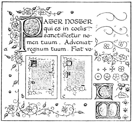“Perfect illumination,” says Ruskin, in one of his Lectures on Art, “is only writing made lovely;... But to make writing itself beautiful—to make the sweep of the pen lovely—is the true art of illumination.” Certainly it is only when the student is able to produce writing that is attractive in itself, that it is permissible to add decoration to it. The decoration should be the natural outgrowth from the writing.