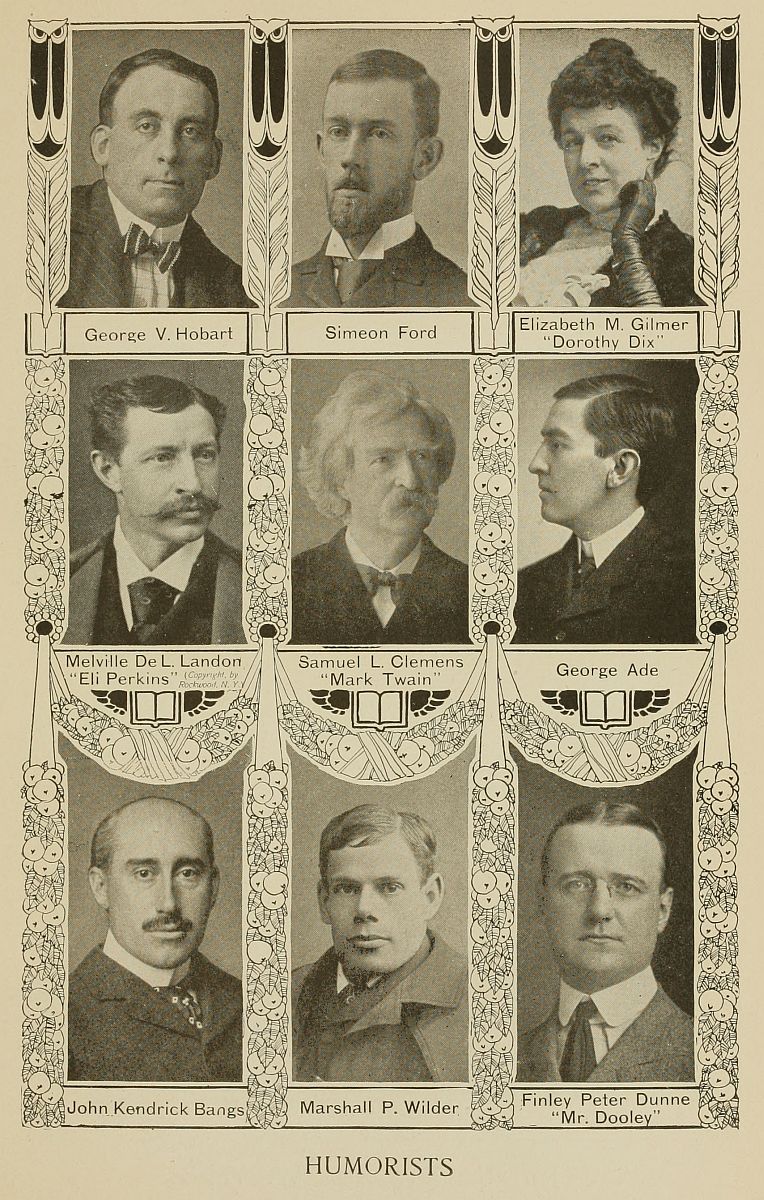 His first attempt at wit was at a little church in New York, where he was one of the audience. A tableau was being given of “Mary, Queen of Scots,” and in order to make it realistic they had obtained a genuine butcher’s block and a cleaver. As the executioner stood by, the lights all turned low, and his dreadful work in progress, a shrill voice arose from the darkened house:—