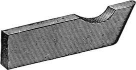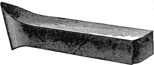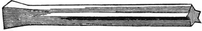 A very convenient tool for inlaying veneers edgewise, so as to produce alternate dark and white lines is made by taking a piece of steel, one fourth of an inch by one sixteenth thick, and making a chisel, like Fig. 73. The bottom is rounded to prevent it from digging in. To use this tool, or to inlay fine white and black lines, or white lines alone, all over the surface of any piece of wood in any pattern desired, it is only needful to mark out the pattern first, incise it all around with a sharp keen edge, such as a knife blade broken off to form a square end, and then follow the lines with this tool, when the wood will come away, leaving a clean channel, in which the veneer may be inserted with expedition and neatness. In crossing the corners, it is necessary to use caution, so that they be not broken away, for no inlaying looks well if chipped, or ragged at the edges. This is especially convenient for drawing lines across mahogany boxes that have been put together before inlaying was thought of for them. The veneers should all be glued together, side and side first, that is, if two colors are used, then they will fit on the ends properly, and may be handled with more expedition.