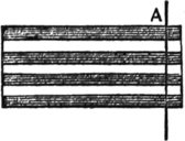 I do not saw off each square strip by itself before I glue the stock, but I lay up several flat pieces, as in Fig. 69, which represents one end section of the strips, longer than it is high, the saw removes some in cutting, so that when I saw down through the top vertically, as shown by the straight line A, I obtain square strips in long pieces, but all glued together so they are easy to handle, these I afterward glue together again, so that white and black alternate, as in the checker-board, and I then have the pattern precisely uniform in all the length of the stock. I claim originality for this plan, and also expedition in execution; more than either I get entire uniformity. Of course it is easy to make any other pattern in the same way, and it is surprising to see how many rectangular and acute-angled patterns can be made with these sections. It is sometimes possible to get veneers of the right thickness, but any veneer cutter will saw the wood as desired.