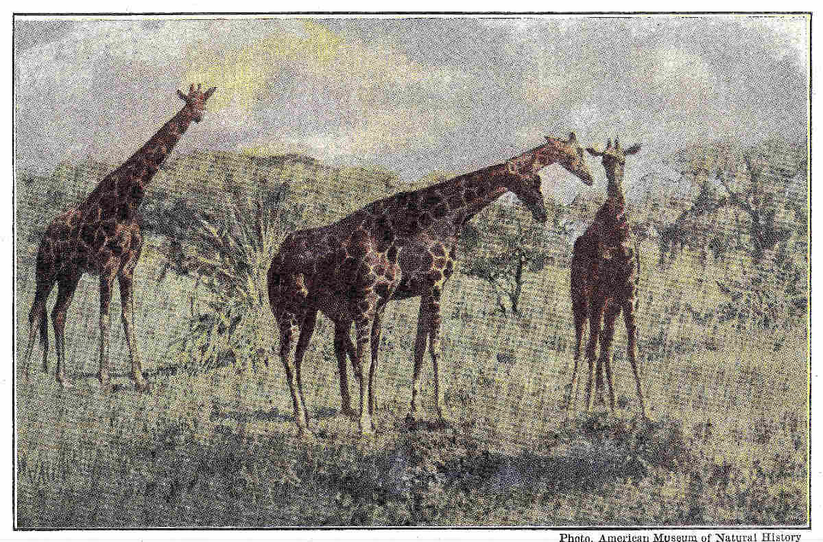 Speaking of the tiger always brings to mind that other great cat, the lion. These powerful marauders dispute the title of "king of beasts." Their respective realms overlap but little. The lion, like the other big cats, is a relic of a diminishing race and kingdom. In the early Stone Age the "cave" lion (virtually the same as the present Felis leo) roamed throughout the southern half of Europe, and its final extermination north of the Mediterranean was doubtless accomplished by prehistoric men. Afghanistan, Beluchistan and northern Persia were rid of them long ago. A century ago lions were more or less prevalent in northwestern India, but now none remain save a few in the Gheer, a wooded hilly tract of Kattiawar. In Persia they survive only in Farsistan, where marshes afford shelter, and the hosts of pigs feeding on the acorns of the oak forests furnish subsistence. But they were long ago exterminated from all Asia Minor, Arabia, Egypt, and Algeria. From Abyssinia, and the southern Sahara southward to the Orange River, lions still exist except in the most populous districts, and in some places are very numerous. This range of territory shows that, unlike the forest-loving tiger, the lion is an inhabitant of open, bushy country, finding its game in the herds of antelopes, zebras, and similar plains-running animals rather than in the jungle fauna to which the tiger is confined; also that the tiger is inured to a far colder climate. This difference in habitat and hunting requirements accounts, in the minds of those who pay much attention to adaptive (or "protective") coloration, for the dif[Pg 360]ference in their dress, for the tiger is said to become almost invisible in its yellow coat and vertical black stripes amid the flickering shadows of the wood, or when creeping through the long Indian grass, while the unmarked, grayish yellow, or sand tint, of the lion is equally unnoticeable on the desert or on the sere veldt of its East African hunting grounds. The great mane of the male lion—but some never acquire this ornament, or only scantily—and his greater height at the shoulder give him a majestic mien.