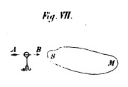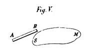 Sia il corpo calamitico in primo significato AB sospeso come si propone, e gli sia presentata la calamita SM, e poi venga rivoltata nel modo detto, in se medesima. Dico che ancora il corpo calamitico si rivolgerà in sè stesso, e, fatta che sarà un'intera revoluzione della calamita, sarà ancora fatta un'intera revoluzione del corpo calamitico. Imperocchè, per quello che si è dimostrato di sopra, essendo la parte B di virtù meridionale, la parte S della calamita sarà di virtù settentrionale, ed essendo il mezzo circumfuso alla calamita, corpo calamitico in secondo significato, ne seguirà che le due parti verso S saranno di virtù meridionale, e però mentre la calamita starà ferma, rimarrà ancora fermo il corpo calamitico; ma venendo la calamita rivoltata in sè stessa, è necessario che ancora il corpo calamitico si rivolga, dovendosi sempre far l'unione della banda settentrionale con la banda meridionale, sicchè fatta che sarà la metà della revoluzione della calamita, e trasportata la parte S in M ed M in S, la parte [car. 199 verso.] B sarà in A, e l'A sarà in B, e così compita che sarà l'intera revoluzione della calamita, sarà ancora compita la revoluzione del corpo calamitico, e negli archi intermedii della revoluzione il corpo calamitico avrà varie e diverse positure ed inclinazioni in rispetto alla calamita; le quali inclinazioni in rispetto alla calamita si vanno mutando secondo il moto della calamita con tal legge e regola che sempre da tutti questi corpi, cioè calamita, calamitico del primo ordine e calamitico di secondo ordine, venga costituito come un corpo solo di calamita.