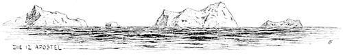 Sapieha weiss nicht, wohin er eigentlich reisen soll; jagen kann er nicht, da er nur mit einem kleincalibrigen Express ausgerüstet ist; er spricht kein Englisch, dürfte demnach allein schwer fortkommen; ich schildere ihm die Wunder des Hofes von Siam und bitte den Gesandten, ihn zur Mitreise als Honorar-Attaché aufzufordern; dies geschieht, und so ist allen geholfen. Sapieha ist glücklich, auf so bequeme Weise nach Ostasien zu kommen, Biegeleben hat für die Mission ein sehr schätzbares Mitglied und ich habe einen angenehmen jungen Collegen erworben! Wir passirten heute den Gebel Tür, einen aus dem Meere aufragenden unbewohnten vulcanischen Felsen; bald darauf eine ganze Reihe solcher dunkelbrauner Inseln, lauter erloschene Krater, einige mit üppiger Vegetation, die sogenannten »zwölf Apostel«. – Dr. Walther hatte einige hübsche Skizzen derselben gemacht, als ein unerwarteter Windstoss sein Zeichenbuch davonträgt!