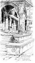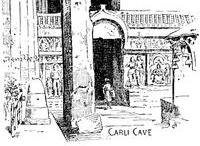In unserem bequemen Coupé konnten wir bis ½5 Uhr morgens die 78 Meilen ruhig verschlafen, d. h. die Anderen konnten es, ich dagegen musste fortwährend auslugen, um die Station Khamballa nicht zu übersehen. Dort angelangt, werfen wir schnell unser spärliches Gepäck einigen Coolies zu und marschieren in der finsteren Nacht zu dem eine Meile entfernten Dack Bungalow, – prachtvolle kühle, würzige Gebirgsluft, wie wir schon lange keine eingeathmet. – Das Bungalow ist offen, aber leer, in einem Zimmer brennt eine Lampe, wir dringen hinein, legen uns auf die zwei Betten und einen Lehnstuhl und setzen schleunigst den unterbrochenen Schlaf fort. – Um 7 Uhr weckt uns der portugiesische Khitmatgar, bestellt Pferde, servirt uns ein copioses Frühstück, und um 8 Uhr traben wir schon lustig auf netten kleinen Ponnies den Carli Caves zu – 7 Meilen – d. h. 5 Meilen auf der Heerstrasse, dann noch zwei über Felder und dann etwa ½ Stunde Fusskletterei. Der grossartige in den Felsen gehauene Jain-Tempel erinnert lebhaft an eine Kirche, die Schnitzereien sind superb, das daneben ausgehauene Kloster höchst merkwürdig. – Unter Bakschisch- und Salaam- und Sah'b-Rufen der zahllosen Bettelkinder treten wir den Rückweg an und gelangen um 1 Uhr heiss und staubig wieder in Khamballa an, wo ein famoses Tiffin unser harrt. An der Bahn treffen wir einige Tiroler Jesuiten, darunter einen früheren Lehrer Biegeleben's, jetzt Rector der katholischen Universität in Bombay, – und dampfen um 2 Uhr wieder ins Tiefland hinab. – Die Bahn ist herrlich, die Berge prachtvoll, die Aussicht auf die in Sonnengluth liegende Ebene und das glitzernde Meer im Hintergrunde wundervoll. – Um ¾7 Uhr nachmittags rollen wir in den Victoria-Terminus ein, und sofort stürzen wir ins Hôtel, denn um 8 Uhr ist Diner bei Lord Reay, also verdammt wenig Zeit zu verlieren. – Die Einladerei war komisch: Samstag war Sapieha, Sonntag war Biegeleben, Montag war ich (und zwar per Telephon) zu demselben Festessen eingeladen worden! In grösster Eile wird gewaschen, rasirt, angezogen, und um ½8 Uhr fahren wir die schon wohlbekannte Strasse um die Back Bay nach Malabar Point – grosser Park, riesiges einstöckiges Bungalow, an der Treppe roth und goldene Lanzenträger mit blauen Turbans; oben Empfang durch verschiedene Aide-de-Camps mit roth ausgeschlagenen Fräcken. Vorstellung bei Lord und Lady R., grosse Versammlung, Széchényi, Hoyos, ein russischer Admiral mit seinen Officieren und viele Andere; solennes Diner mit Tafelmusik und hinter den Stühlen stehenden, roth und goldene Fächer wedelnden Schwarzen, – alle Diener in Roth und Gold mit weiss und goldenen Turbans, aber ohne Fussbekleidung! Toast Lord Reays auf unseren Kaiser, Volkshymne, kurzer Spruch Biegeleben's auf die Gesundheit der »Queen Empress«, und die Damen räumen endlich das Feld und lassen uns mit Cigarren, Kaffee und etwa 40° C. zurück! Von der grossen, das ganze Haus abschliessenden Veranda entzückender Blick auf die Tausende von Lichtern der Stadt. – Gegen 11 Uhr brechen wir auf, d. h. wir wollen es thun, aber dafür bricht an unserem Wagen die Deichsel, und wir müssen eine halbe Stunde auf die Reparatur warten, indessen uns der erste Aide-de-Camp Captain Bruce Hamilton sehr nett die Honneurs macht und uns mit Wisky pegs überschütten möchte. Der Chef und Sapieha gehen noch zu einem im Yachtclub stattfindenden Ball, ich aber suche erschöpft das wohlverdiente Bett auf.