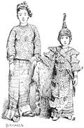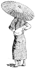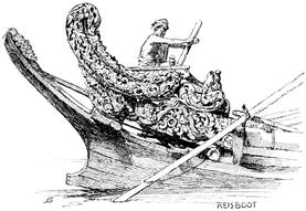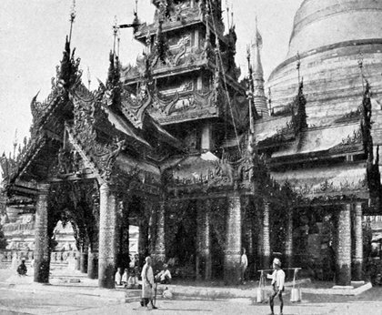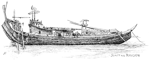 | Weihnachtstag! Mitten im indischen Ocean, es regnet wacker fort, dafür bläst es aber fest, und der alte »Poseidon« fängt an heftig zu stampfen, die Fastenspeisen – in Oel schwimmend – haben auch ihre Wirkung nicht verfehlt, und wir Alle ohne Ausnahme, vom Commandanten bis zum letzten Matrosen erfreuen uns der schönsten Dysenterie! Ich wackle missmuthig und etwas trübsinnig in meine Cabine und finde dort nebst einer Christmas Card eine prächtige getriebene silberne Schale, altbirmanische Arbeit aus dem Schatze des Königs Thebaw, als Weihnachtsgeschenk des Gesandten; der Eindruck ist kolossal, – alle Wehmuthsgedanken verschwinden wie mit einem Zauberschlage (leider nicht die Dysenterie), und wir stürzen zu Biegeleben, um ihm gerührt und dankbar die Hand zu schütteln; denn auch Sapieha hat eine Kashméri Coupe erhalten, blaue und grüne Emaille auf Silber, und Mersa ist gleichfalls betheilt! |
