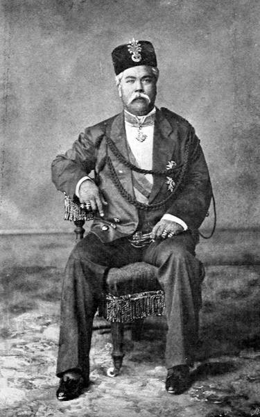 Unseres Kaisers 40jähriges Regierungsjubiläum: bei Tische erscheinen wir Oesterreicher alle im Fracke mit Orden, auch der Commandant hat sich in Gala geworfen. Biegeleben hält auf deutsch und französisch eine kurze, aber sehr gute, kernige und fesche Rede; auch einer der Anglo-Indier spricht einen Toast, und so kommt mit Hilfe des Sects eine sehr gehobene Stimmung in unsere kleine Kaiserfeier, – dies bei der angenehmen Temperatur von 35° C. in dem Speisesaale. – Nach Tisch erzählt mir der liebe Pertile wieder seinen Streit mit Brand!