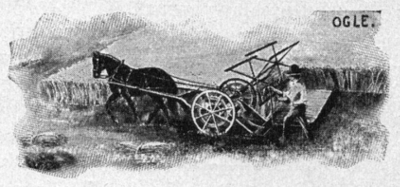 Kerr, Smith and others added their mite of knowledge, and in 1822 Henry Ogle, an English schoolmaster, invented a reaping machine that was made by a Mr. Brown, and which cut one acre per hour. The trial was so successful that the laborers in the field, fearing the competition of the innovation, mobbed the inventor and maker and broke up the machine. The patent shows its construction.