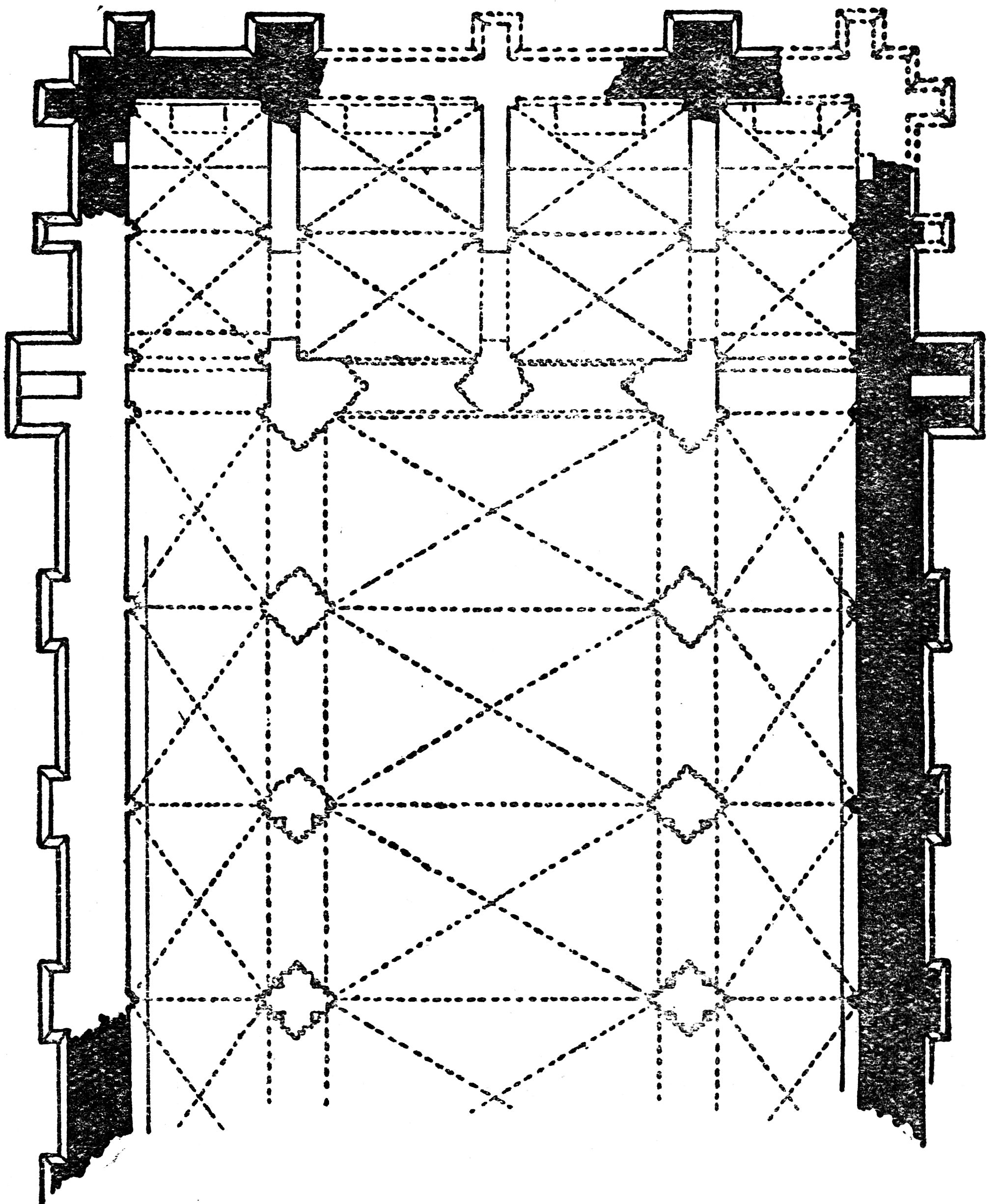 48 This seems perfectly true. The great piers buckled under the weight of the tower, and bowed inwards, probably pushing the vault, and cracking it by compression.—F.B.B.
