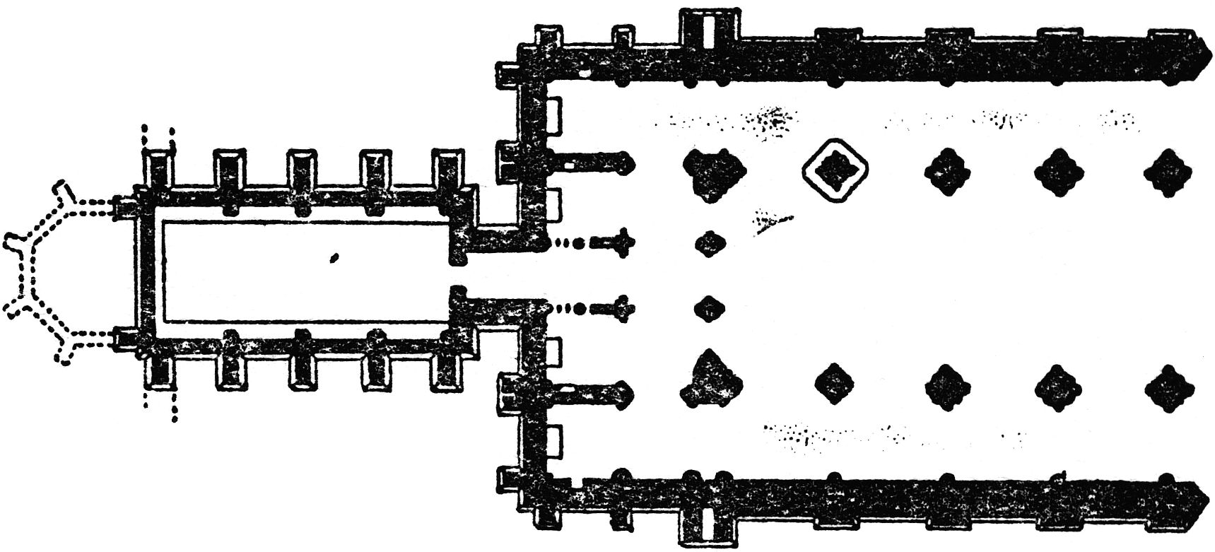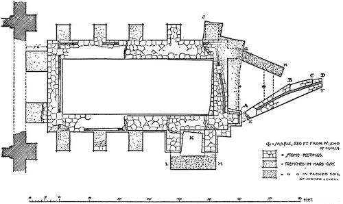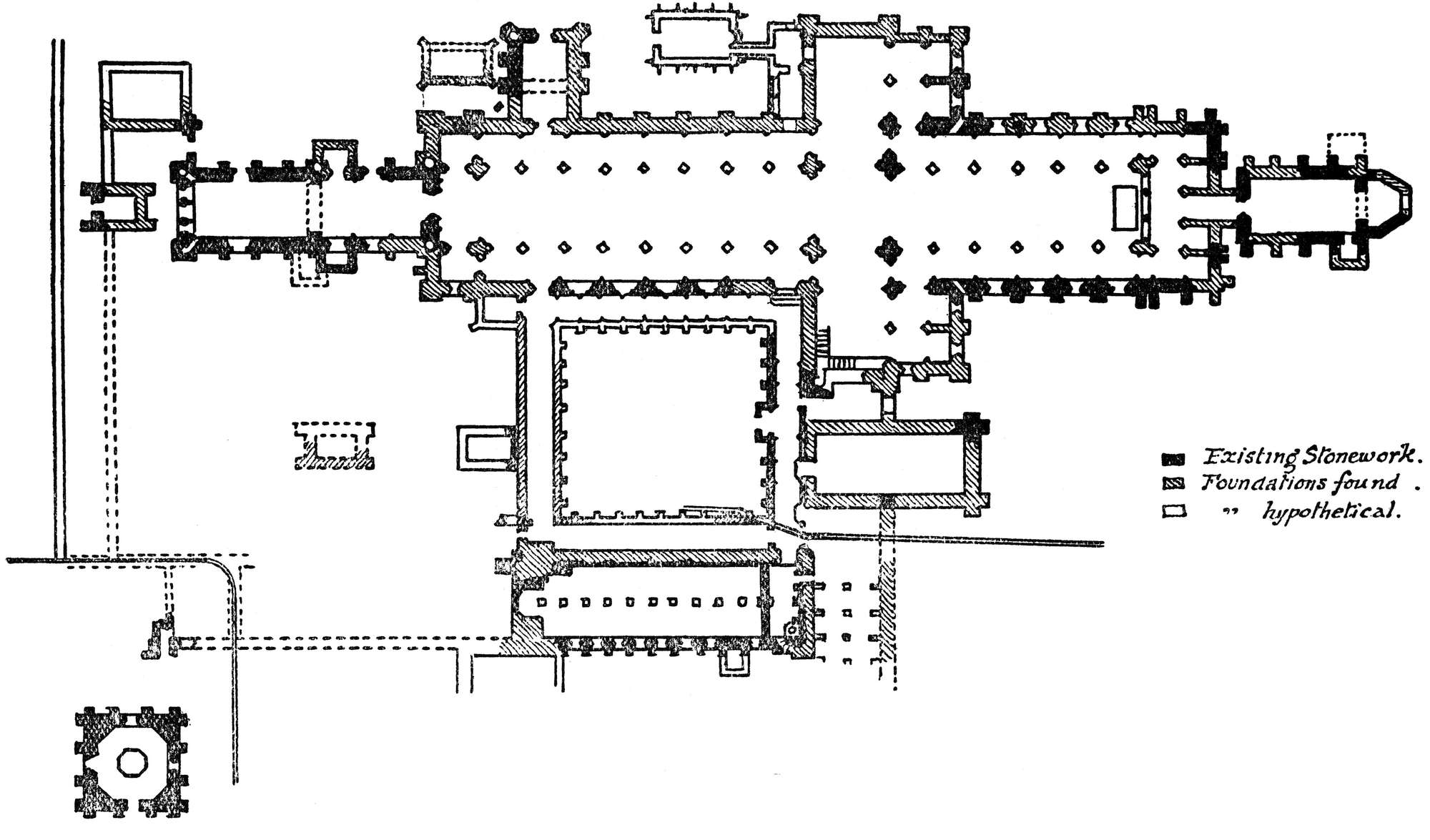 "The great Church in the Aby was ... 594 feet." And our own plan (Fig. 12), based on careful measurement, yields the total 592 feet! (The 580 feet measure discussed on p. 62 is an internal measure.)