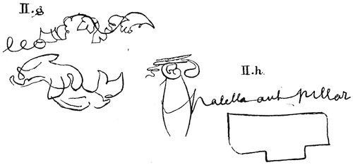 20 There is a sketch of this pillar given in the 1908 volume of the Proc. of the Somerset Arch. Soc.. It was found by F.B.B. in Kerrich's papers in the British Museum. Its position would fairly obviously correspond to that which the script suggests, and there is therefore nothing very remarkable about this.