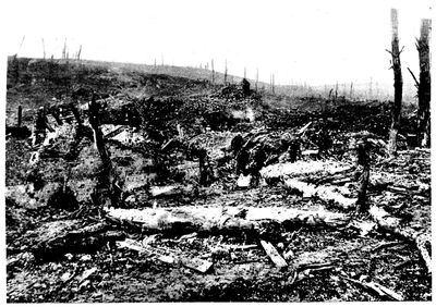 In front, towards the left, is Beaumont-Hamel. Out of this heap of rubbish start up three-cornered bits of wall, which give to these ruins the look of a dwarf village. On the hillside a mangled copse looks like those guileless charcoal strokes which one sees in a child's drawing. To the right—Beaucourt. Here the ruin is absolute. I have hunted in vain for any trace of man's handiwork. Even the dust of the stones has blown away.