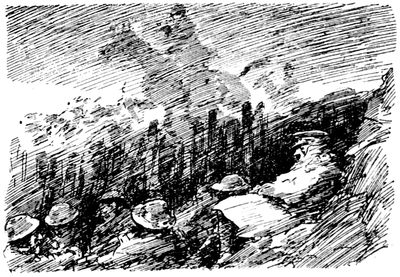 That two-hour tramp through a few kilometres of trenches was a heart-breaking business. We floundered through holes, we were swallowed up in bogs, while the mud that fell from the parapets gradually spread itself over our oilskins. A steel helmet becomes wonderfully heavy after an hour or so, and a dizzy headache soon tormented us, from the constant right-angled turns which we were obliged to make, like so many slaves at a cornmill. But what a reward has been ours since our arrival!