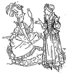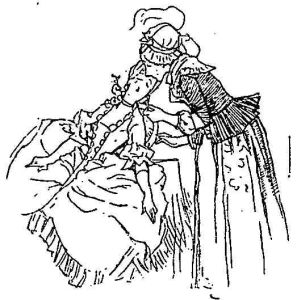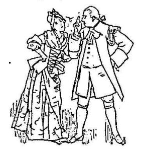Countess.—A yellow silk petticoat, with gay over-dress. Hair high and powdered. Jewels and fan.