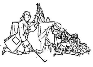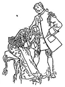 Lustucru.—French small-clothes, dark colored. Hair in queue, and powdered. Also a cowl for Act II.