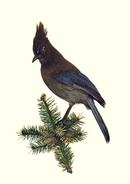 The Steller's jay (Cyanocitta stelleri), of which the long-crested form is a geographical variety, is a resident of the Northwestern portion of North America ranging from northern California to southern Alaska and eastward to the Cascade Mountains.