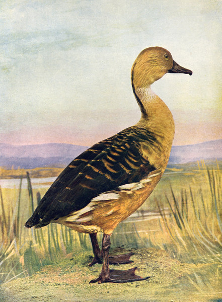 The Tree Ducks are natives of tropical or semi-tropical countries. Two species are found in the United States, the bird of our illustration and the Black-bellied Tree-duck (Dendrocygna autumnalis). The range of the fulvous species extends from the southern border of the United States, and in Nevada and California, southward through Mexico, and reappears in the southern portion of Brazil and in the Argentine Republic. It has also been reported as a visitor to the states of North Carolina and Missouri.