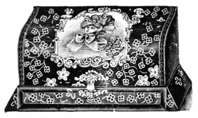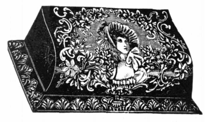 | 45/33. White Celluloid, | colored flower front decoration, plush binding and corner tips, nickel clasp; spaces for 18 cabinets and 8 cards | $16 00 | |
