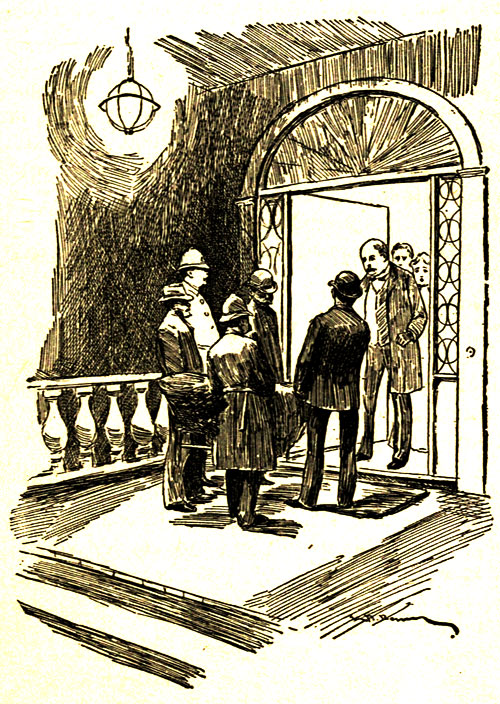 Before the persons outside could ring the bell, Judge Vernon had flung the door open. Mrs. Vernon and Douglass stood close behind him. Looking out on the lighted veranda, they saw a group of men, among them two police officers, and carried on some rude couch, in the midst of the group, lay the form of a man covered with a blanket.