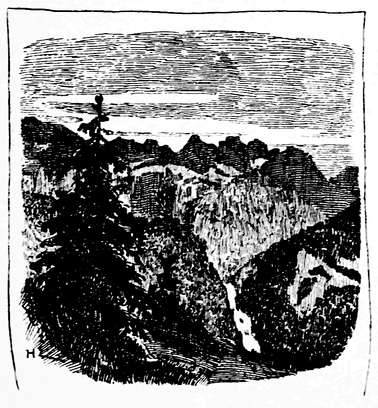 Über allen Bergen war der rote Schein erloschen; ein grauvioletter Duft ließ Himmel und Erde ineinanderschwimmen. Zu Haymos Häupten dunkelte schon die Nacht; nur fern im Westen zog sich über den Horizont noch ein grünlichgelber Lichtstreif, in den der gezackte Grat der Lattenwand sich schwarz hineinzeichnete.