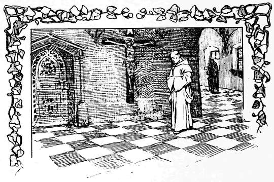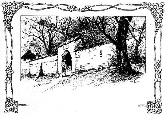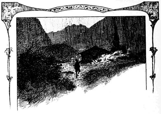 Haymo zog die Kappe und sprach ein Gebet. Dann ließ er sich zu Füßen des Kreuzes nieder, lehnte sich an den Stamm, verschlang die Hände hinter dem Nacken und blickte still umher mit müden Augen, die sich schon dem Schlummer entgegensehnten. In kurzen Stößen, bald sich dämpfend, bald wieder aufbrausend mit verstärkter Macht, sauste der Föhn über ihn weg.