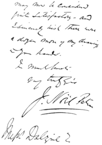 In preparing the contents of this book it would have been impossible to give the many specimens of our work but for the kind and liberal spirit with which our requests were responded to by the various publishers who had entrusted us with their commissions from our very earliest days. Our best thanks are due, in the first instance, to Messrs. Adam & Charles Black, for the loan of two engravings for the "Abbotsford Edition of Scott's Novels," which were amongst our first important works; the Art Union of London, for a specimen of Kenny Meadows'; Messrs. Macmillan, for specimens from "The Ingoldsby Legends," "Tennyson's Poems," and "Alice in Wonderland"; Messrs. Bradbury & Agnew, for selections from Richard Doyle's work; Messrs. George Routledge & Sons, for specimens from "Gilbert's Shakespeare" and various "Fine Art Books"; Messrs. Herbert Virtue & Co., for several from Millais' "The Parables of Our Lord" and "Dalziel's Bible Gallery"; Messrs. Blackwood & Son, for "Lays of the Scottish Cavaliers," by Sir J. Noel Paton; Messrs. James Nisbet & Co., for "Lays of the Holy Land;" Messrs. Longman &[Pg ix] Co., for Tenniel's "Lalla Rookh"; Messrs. Smith, Elder & Co., for "Framley Parsonage" and the Cornhill Magazine; Mr. James Hogg, for "London Society"; Messrs. D. Appleton & Co., for "Poems by W. Cullen Bryant"; Mr. John Hogg, for "Poems by Robert Buchanan"; Messrs. Chapman & Hall, for many illustrations to the works of Charles Dickens; the Proprietors of the Graphic, for "The Sisters," by G. J. Pinwell; and to Messrs. Ward and Lock, for "Dalziel's Arabian Nights" and "Dalziel's Goldsmith."