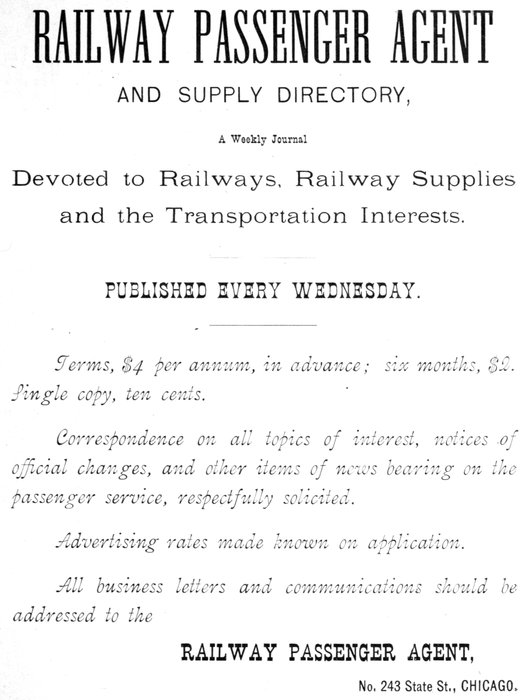RAILWAY PASSENGER AGENT, No. 243 State St., CHICAGO.