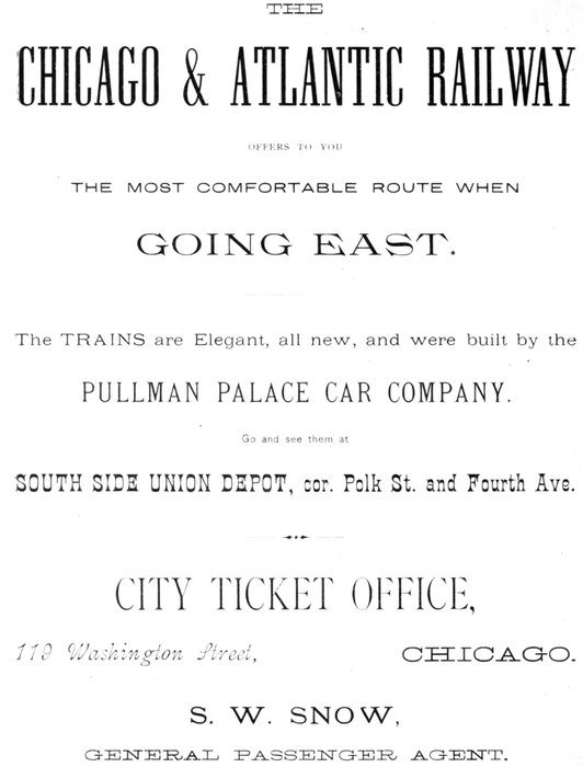 In addition to the above the Atlantic Express will leave Chicago at 8.30 p.m., having through Pullman Cars to Detroit, Saginaw Valley, New York and Montreal without change.