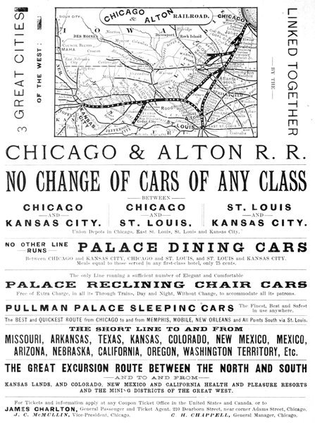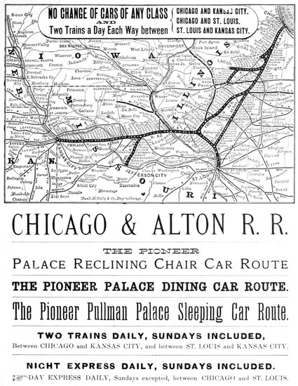NO CHANGE OF CARS OF ANY CLASS { CHICAGO AND KANSAS CITY.
