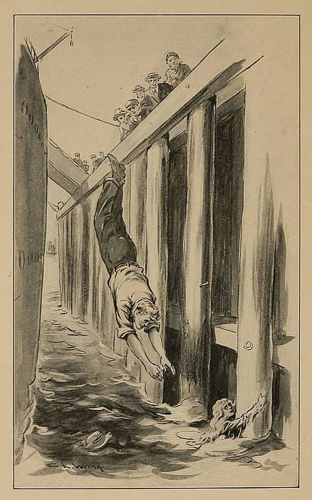 It was all over so quickly that hardly a moment seemed to have elapsed from the instant that the lad sprang from the stringpiece of the dock to the time when the cheering crowd above beheld him clinging to the rough surface of the pile with one hand, while with the other he supported the child, who had fainted and lay white-faced and weak in his grasp.